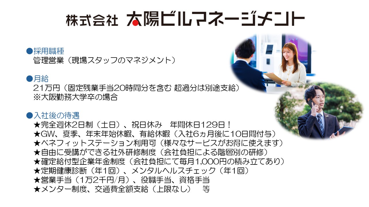 こんにちは、(株)太陽ビルマネージメントの採用チームです。